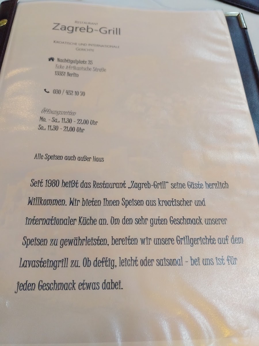 The Zagreb-Grill Menu at Manga-Bell-Platz 25 in Berlin offers a delightful array of flavorful dishes that will take your taste buds on a journey. Whether you're in the mood for a juicy grilled steak or a deliciously seasoned kebab, this menu has something for everyone. The restaurant takes pride in its simple yet mouthwatering offerings, featuring traditional grilled meats, fresh salads, and sides that complement each meal perfectly.